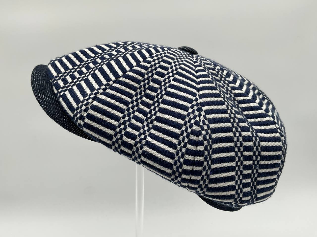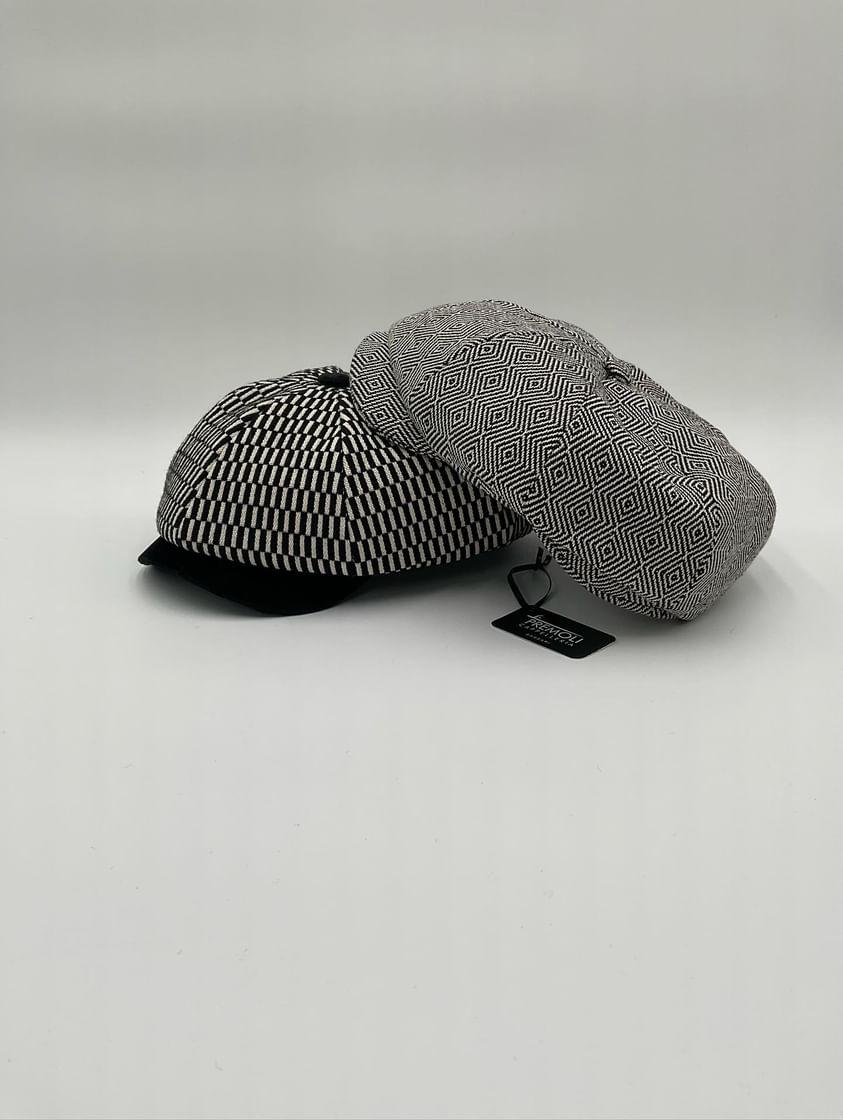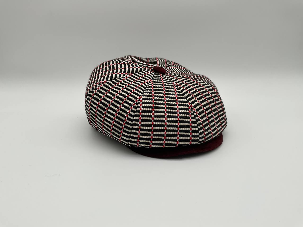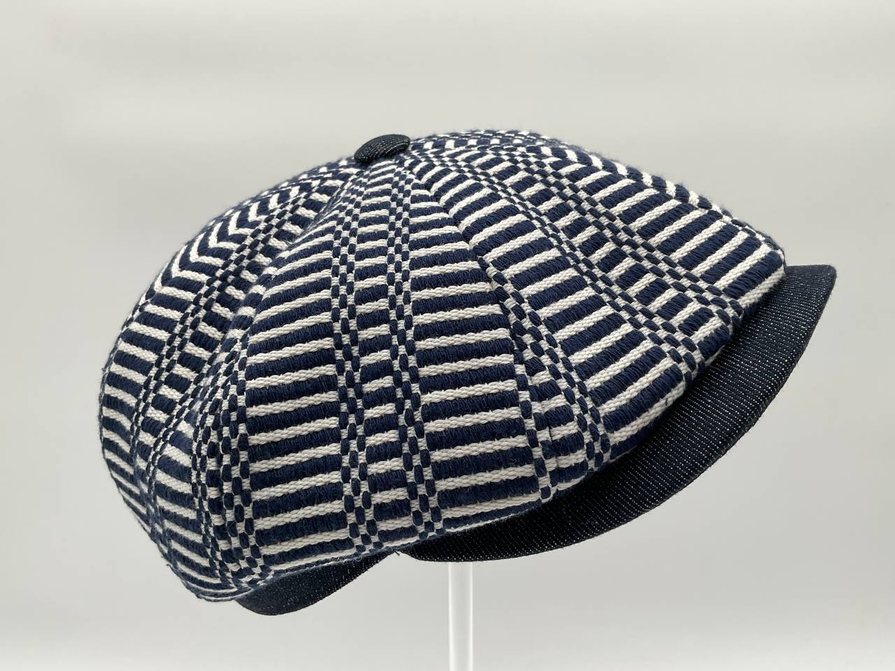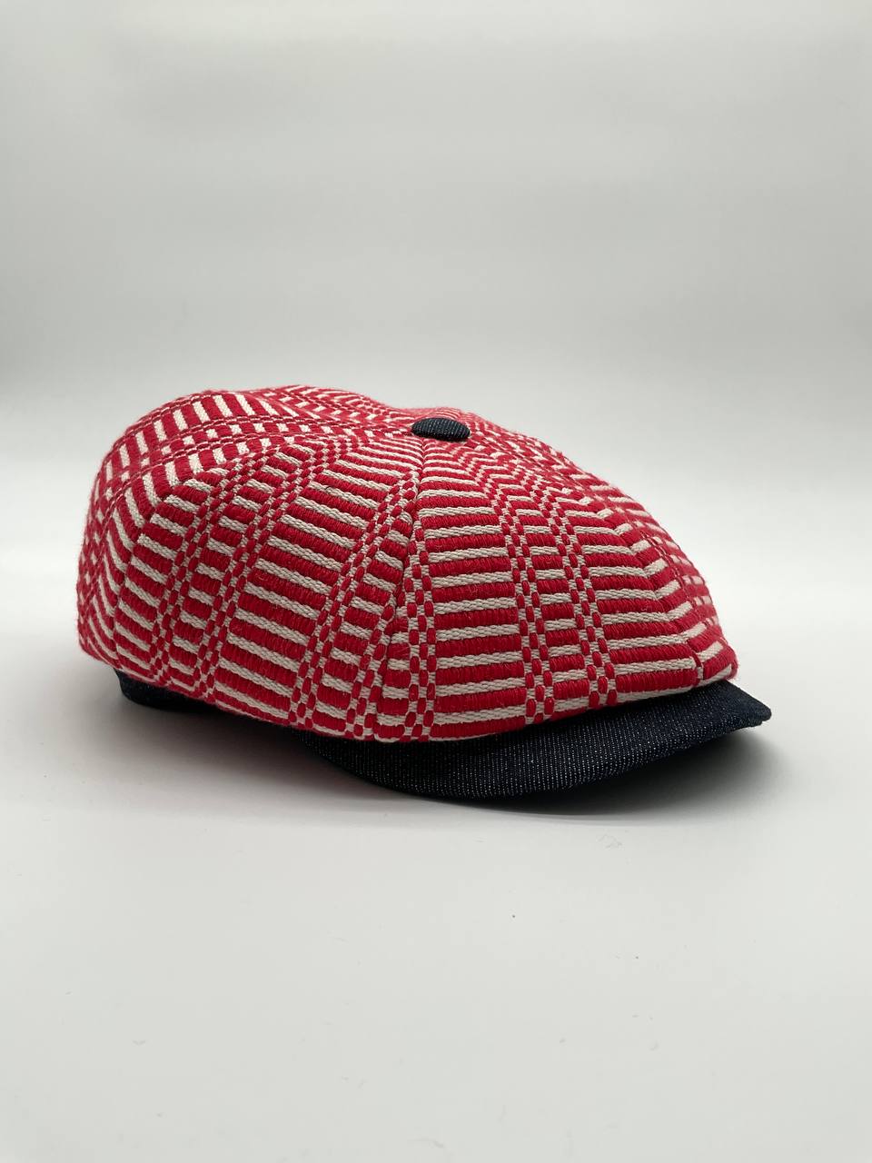 Il Newsboy ricorda il tipico berretto da "strillone" dei primi del novecento, con la classica visiera rigida e curva ma un corpo più rotondo composto da otto pannelli con un bottone in cima. Un berretto unisex, simbolo di stile retrò. In questa versione è in tessuto “Bisaccia” di cotone. La trama presenta un motivo geometrico con righe verticali in alternanza di tessuto rosso e blu o bianco e colore (rosso, blu, beige, verde, rainbow, nero), tipica lavorazione di intreccio Sardo. Visiera, bottone centrale e fascia circonferenza sono in tessuto jeans, o velluto in contrasto. La fantasia rimanda alle tradizionali stoffe utilizzate per realizzare tappeti e la tipica bertula”, la bisaccia Sarda che i pastori utilizzavano per contenere i viveri.